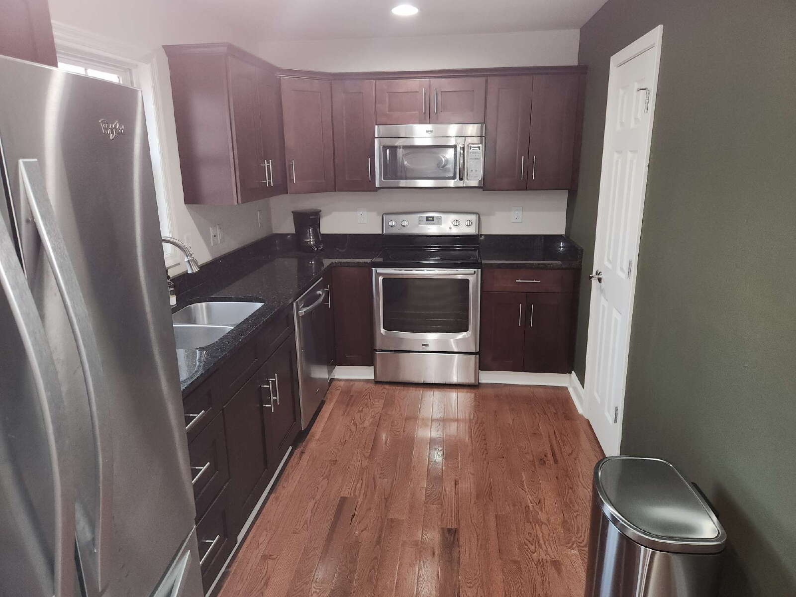 The home features a modern upstairs layout with granite countertops, new flooring, a spacious primary bedroom, and a large walk-in primary closet. The downstairs area offers flexible living space and can be used as a home office, playroom, or second primary suite.